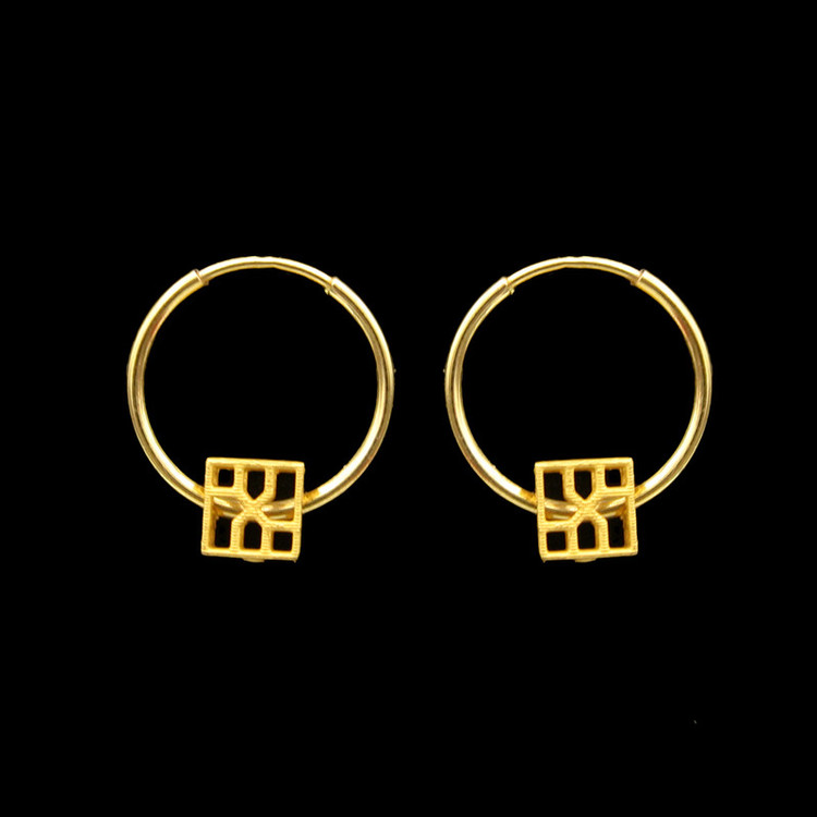 گوشواره طلا 18 عیار حلقه ای به همراه فیوژن طلا 18 عیار طرح مکعبی
