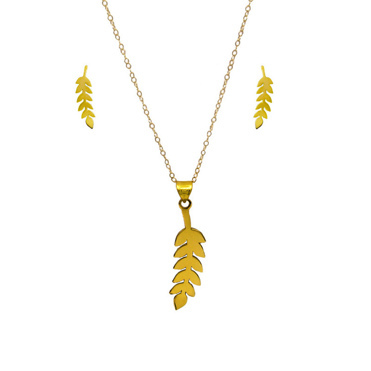 نیم ست طلا 18 عیار زنانه قیراط98 مدل برگ زیتون کد KS006