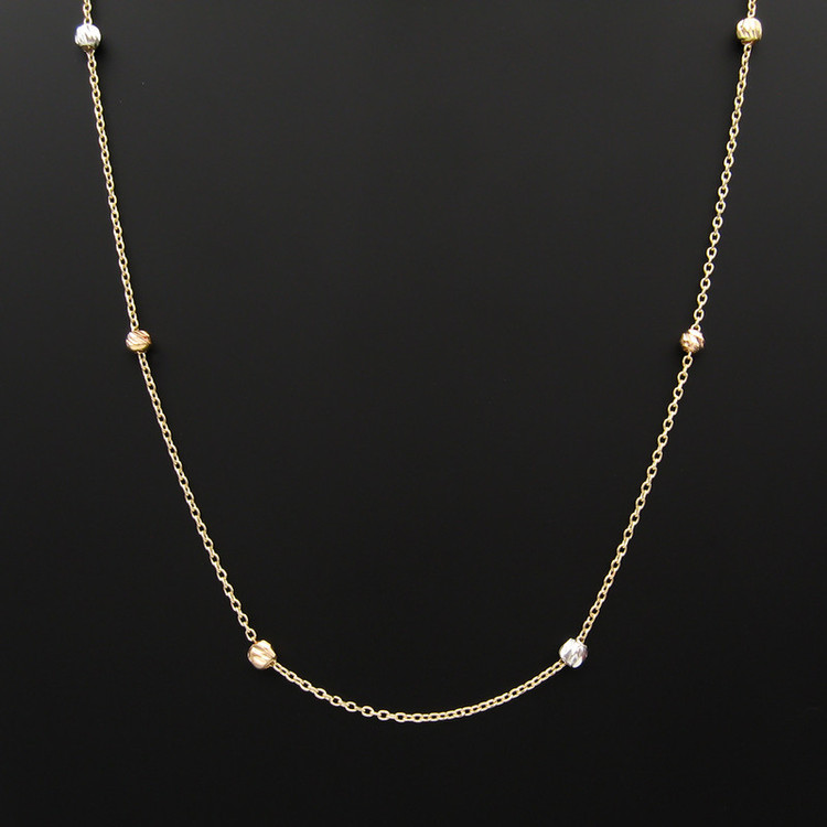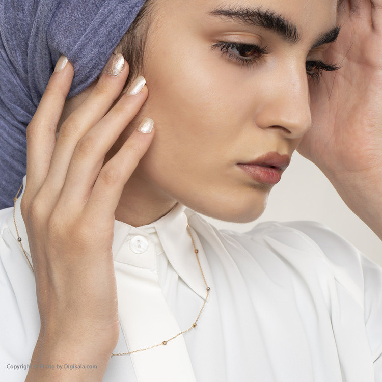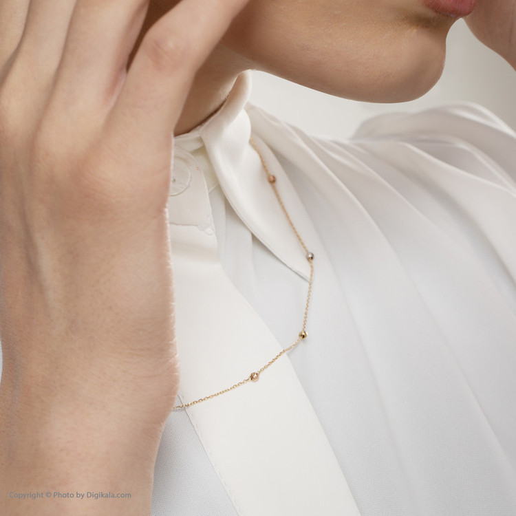 دارای گوی های طلا البرنادو به رنگ های مختلف با ابعاد حدودی 0.3 × 0.3 سانتیمتر طول حدودی زنجیر 40 سانتیمتر