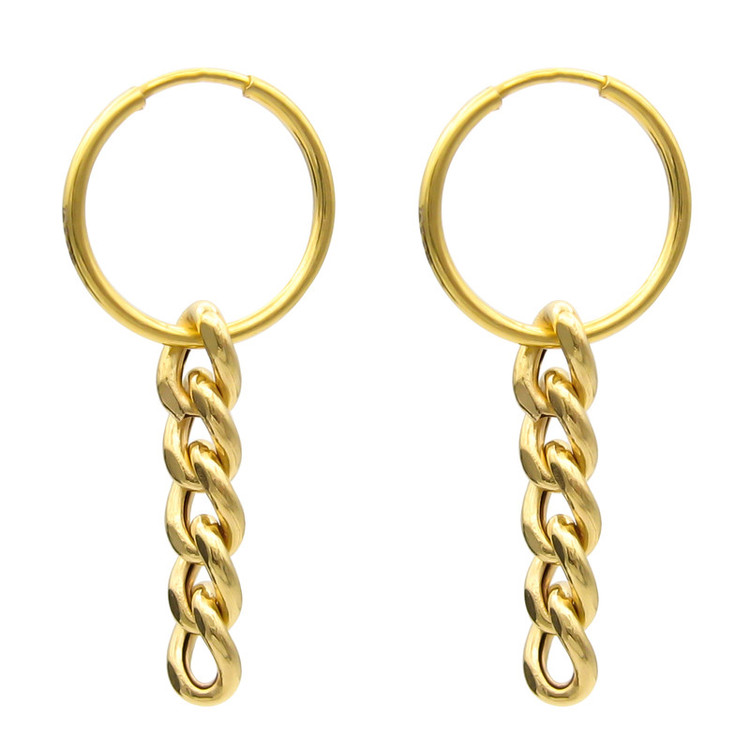 گوشواره طلا 18 عیار حلقه ای با آویز زنجیر طرح کارتیر با ابعاد حدودی 1.3 × 3.3 سانتیمتر