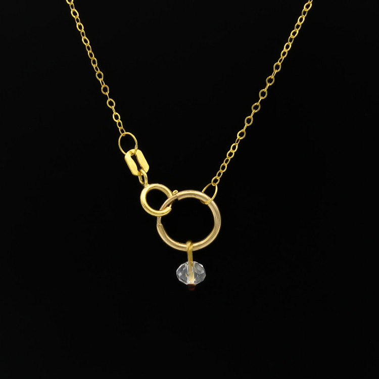 زنجیر طلا به همراه پلاک حلقه ای و آویز مهره کریستالی