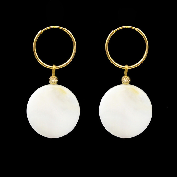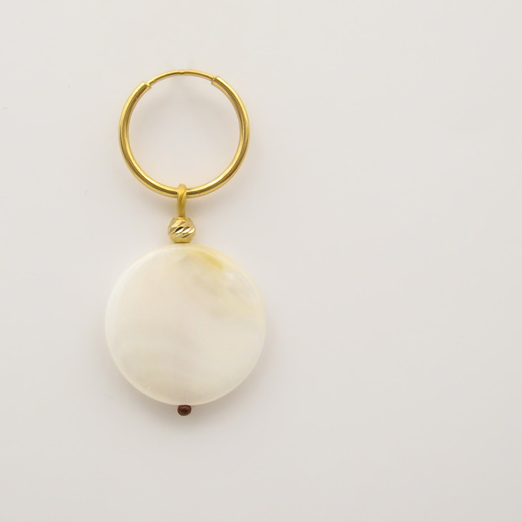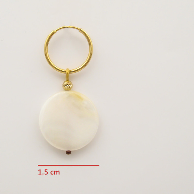 گوشواره طلا 18 عیار حلقه ای به همراه آویز گوی طلای البرنادو و صدف سکه ای بسیار مرغوب با نخ ابریشم طلایی در مشخصات محصول فقط وزن طلای خالص ذکر شده است. در قیمت گذاری نیز فقط وزن طلای خالص در نظر گرفته شده است.