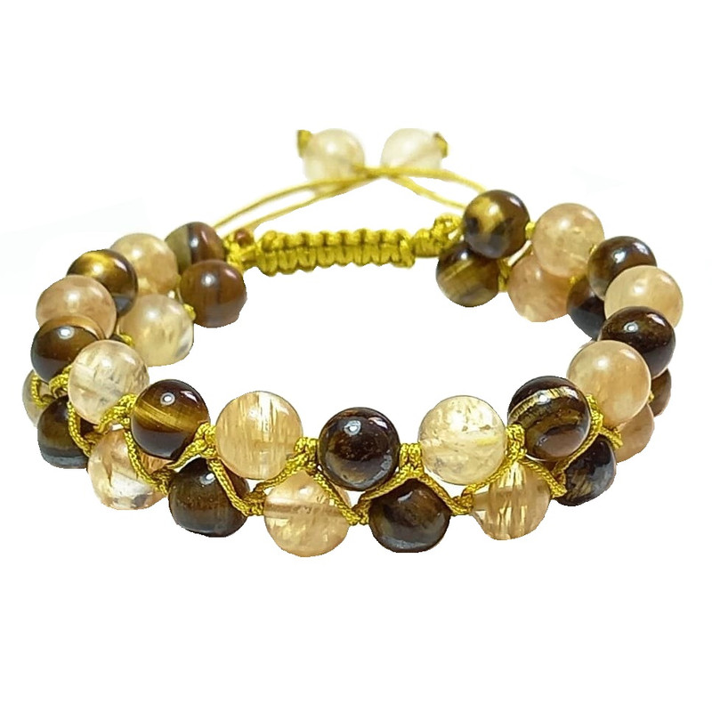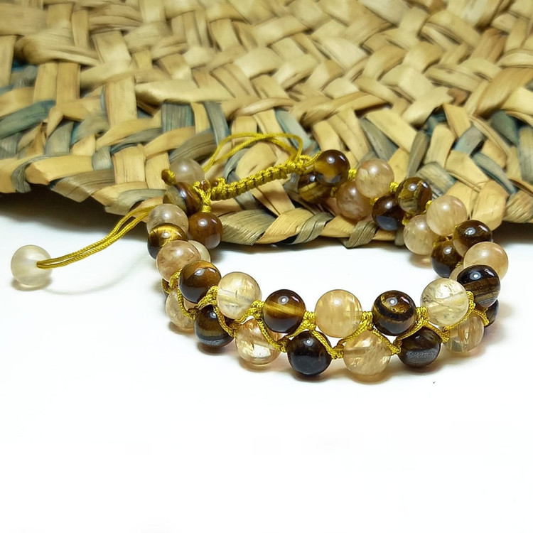 سنگ های به کار رفته سیترین سایز 8 و چشم ببر سایز 8 می باشد. گره انتهایی کشویی و قابل تنظیم برای سایز مچ دست 16 تا 25 سانتی متر می باشد. بافت بین سنگ ها دارای استحکام مناسب و با دقت و ظرافت انجام شده است.