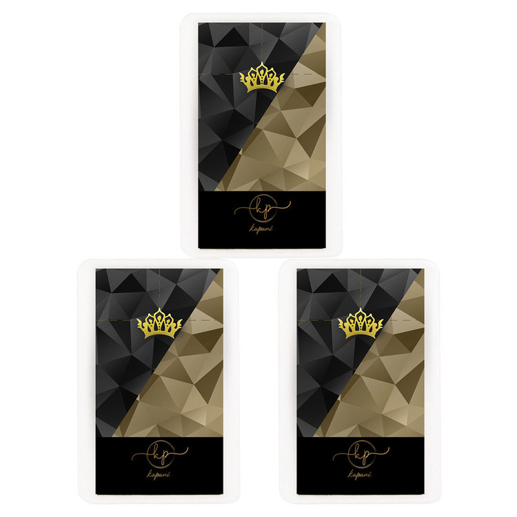 پکیج 3 عددی پلاک طلای 18 عیار طرح تاج / ابعاد حدودی پلاک طلا 18 عیار 1.2 × 1.7 سانتیمتر / ابعاد حدودی کارت 9 × 6 سانتیمتر / درج وزن دقیق و عیار طلا 750 در پشت کارت / دارای بسته بندی اختصاصی برند کاپانی / مناسب برای هدیه