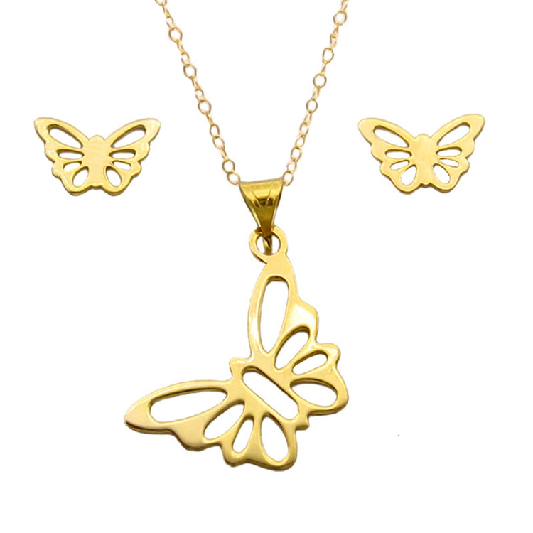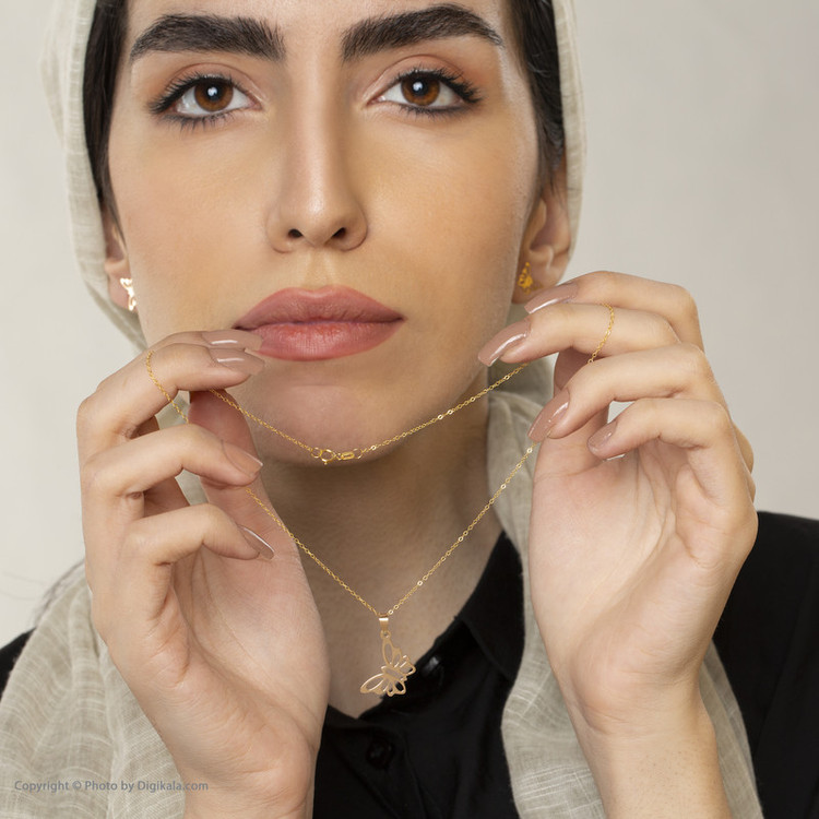 نیم ست طلا 18 عیار زنانه قیراط98 طرح پروانه کد KS016
