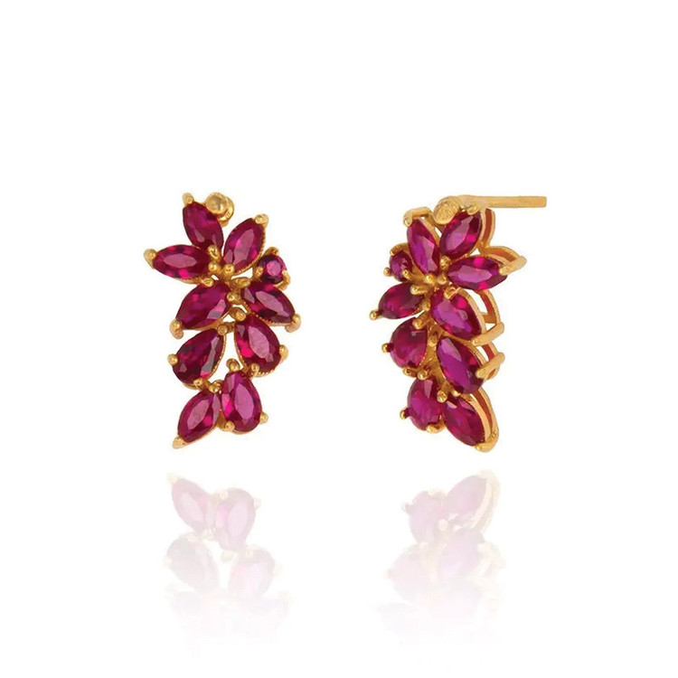شامل نگین هایی از نوع کوبیک زیر کونیا (cz) / نگین های بکار رفته در گوشواره : گارنت قرمز / وزن حدودی نگین ها: 0.96 گرم / وزن طلا بدون وزن سنگ محاسبه شده است.