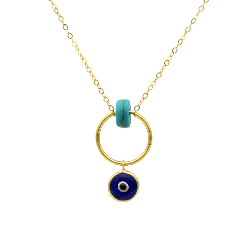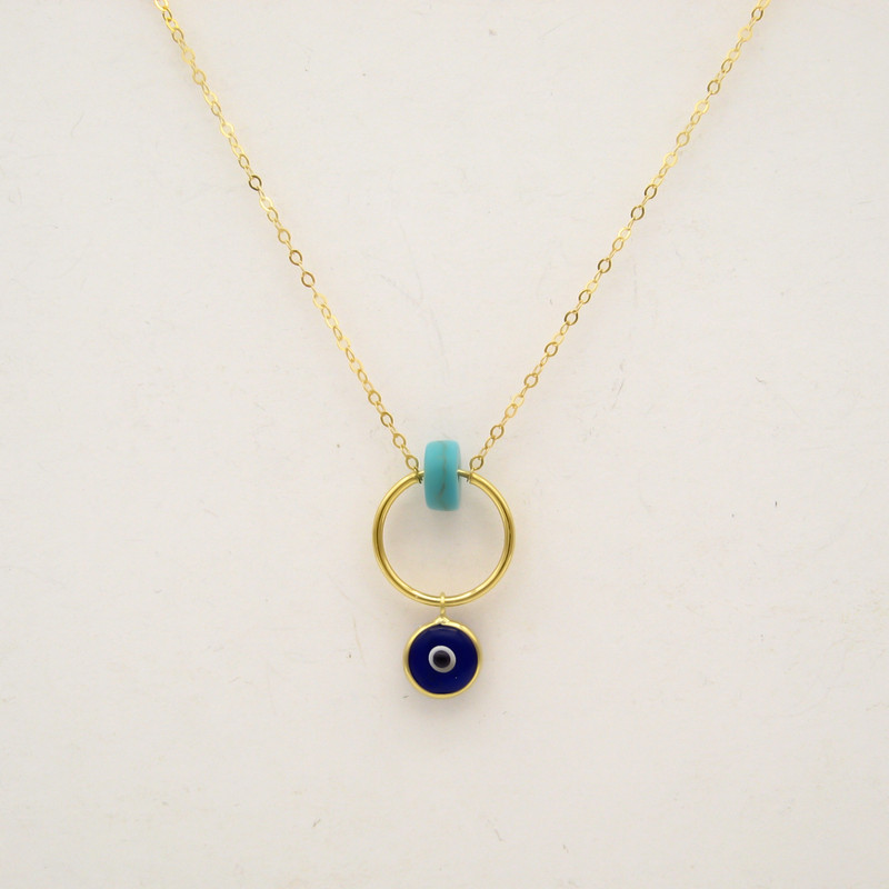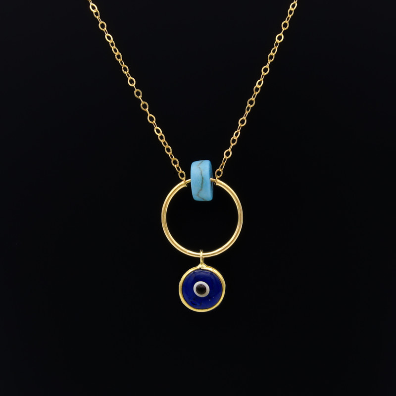 زنجیر طلا به همراه پلاک حلقه ای و آویز چشم نظر