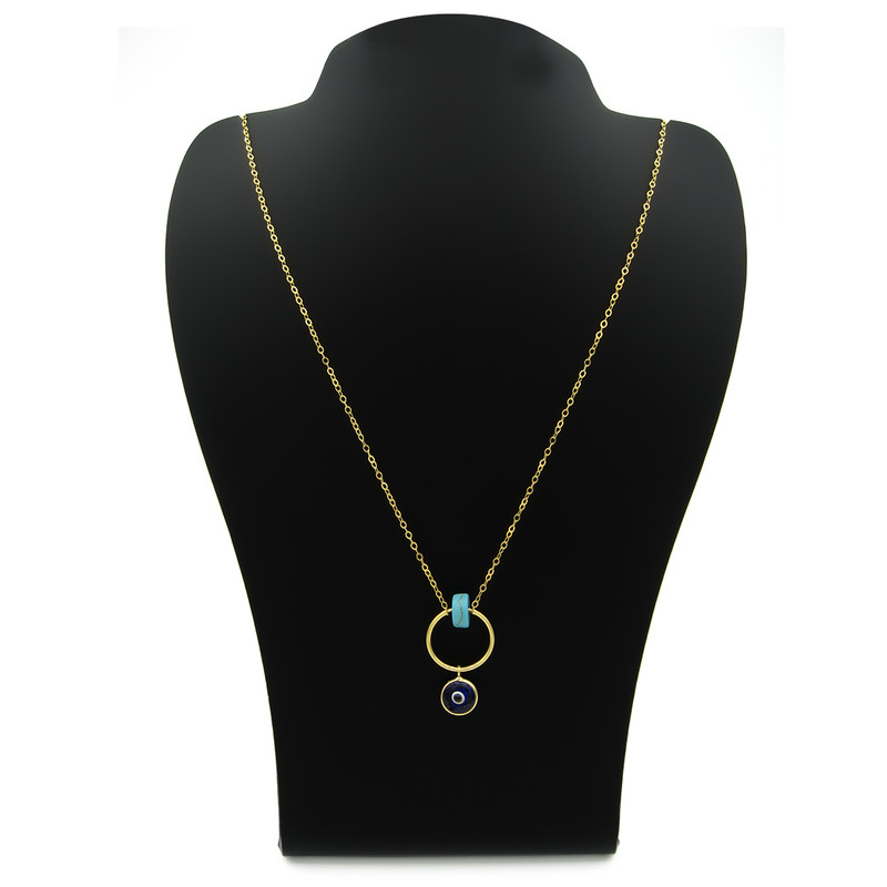 پلاک شامل یک سنگ چشم نظر و یک مهره فیروزه