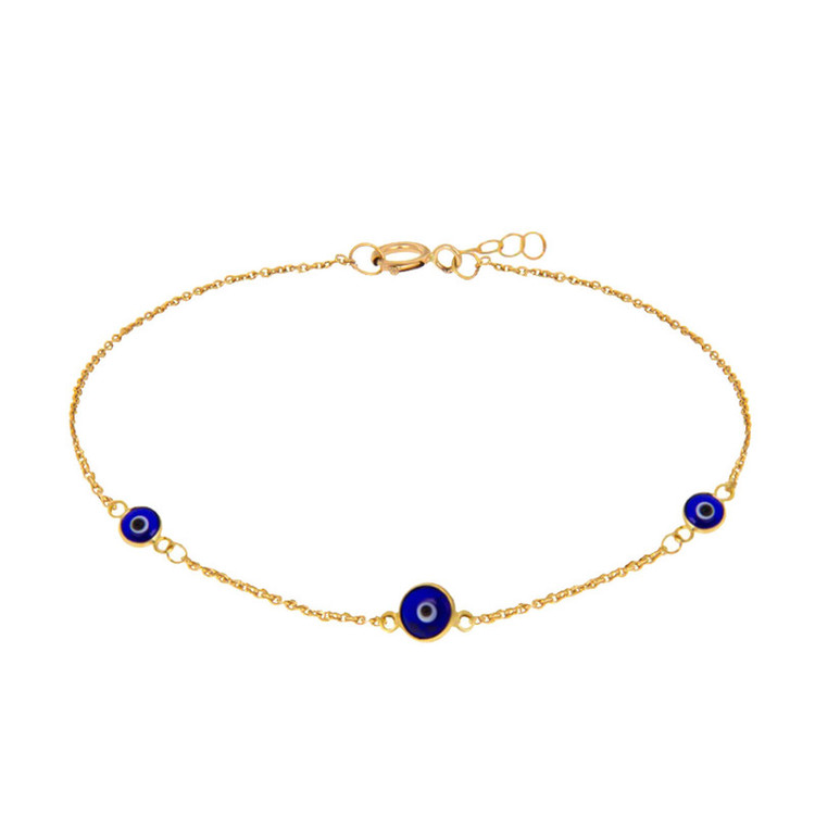 دستبند طلا با سه پولک میناکاری چشم نظر