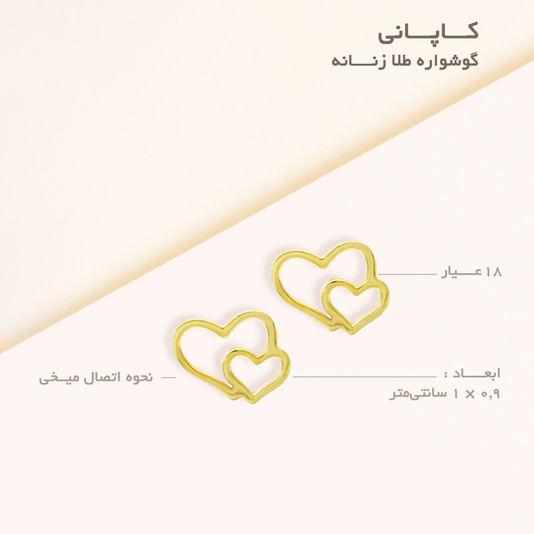 ابعاد حدودی هر لنگه گوشواره 0.9 × 1 سانتیمتر دارای محافظ (پشت گوشواره) پلاستیکی
