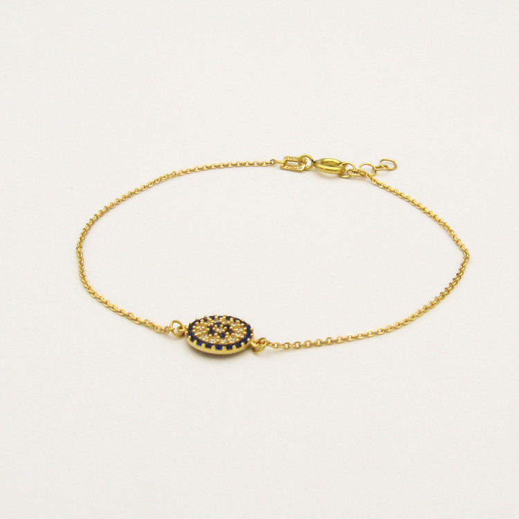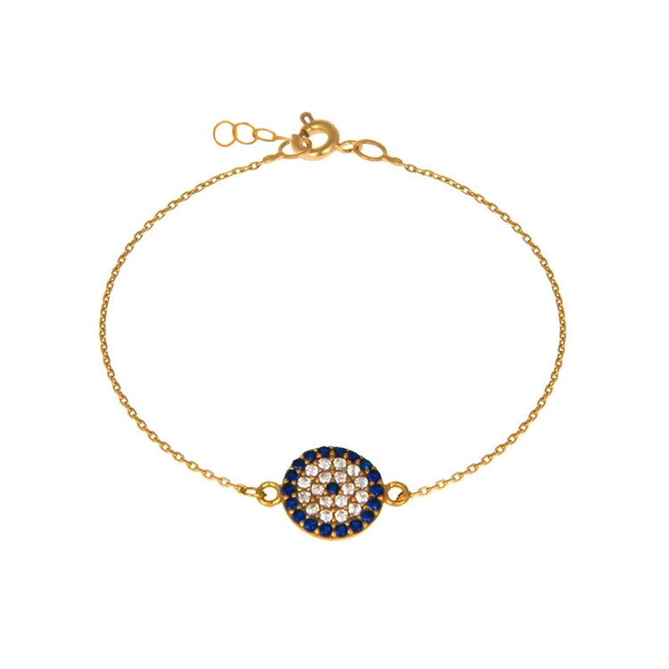 دستبند چشم نظر با نگین های کوبیک زیرکونیا به رنگ سفید و سورمه ای