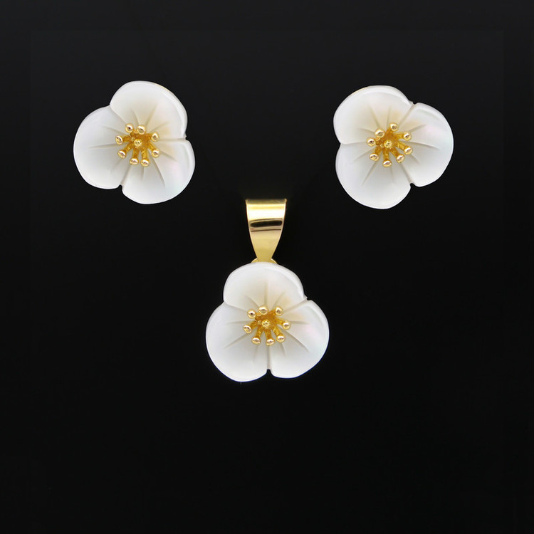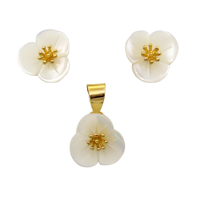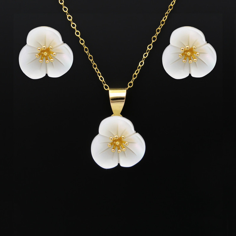 نیم ست طلا 18 عیار زنانه قیراط98 مدل گل و صدف کد KS026