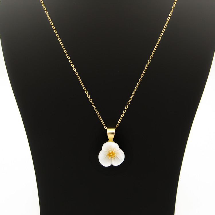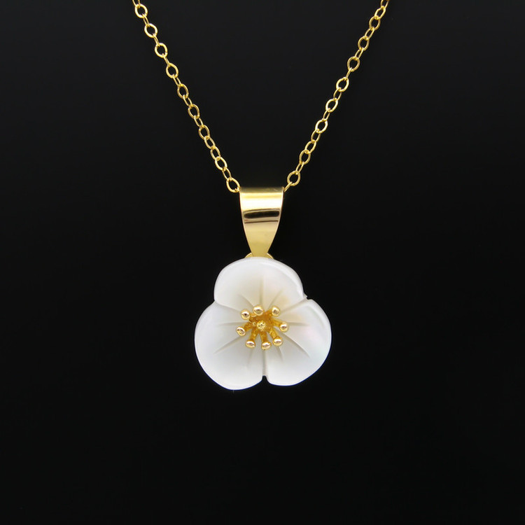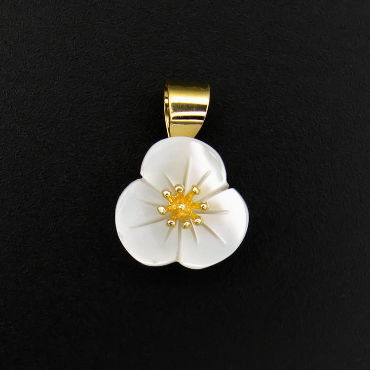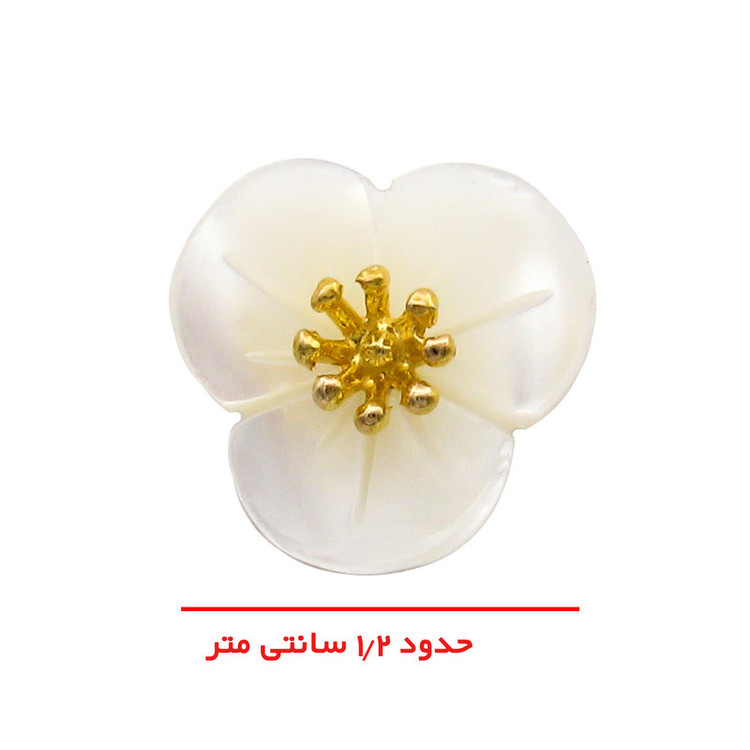 پلاک طلا 18 عیار به شکل گل با گلبرگ هایی از جنس صدف با کیفیت با ابعاد حدودی 1.7 × 1.2 سانتیمتر پلاک گل با تلفیقی از صدف و طلای 18 عیار