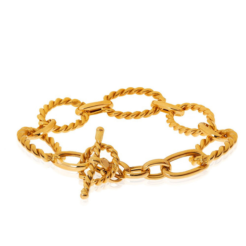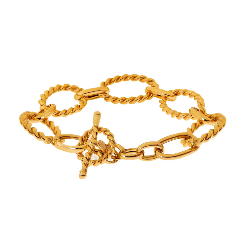دستبند طلا طرح دیوید یورمن با قفل مدل T اندازه حدودی بیضی های طرح پیچ دستبند 2 × 1 با طول حدودی 17 سانتی متر و پهنای حدودی 1.2 سانتی متر