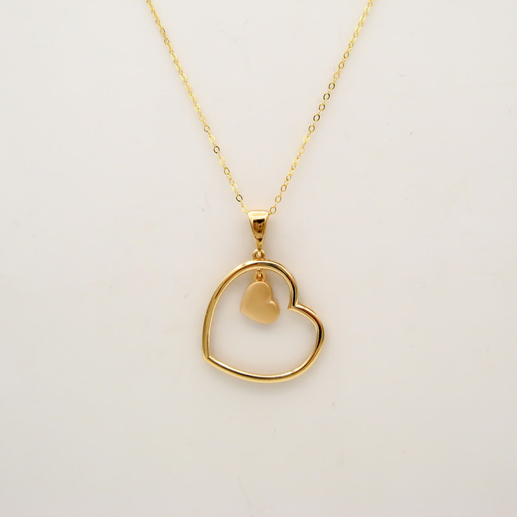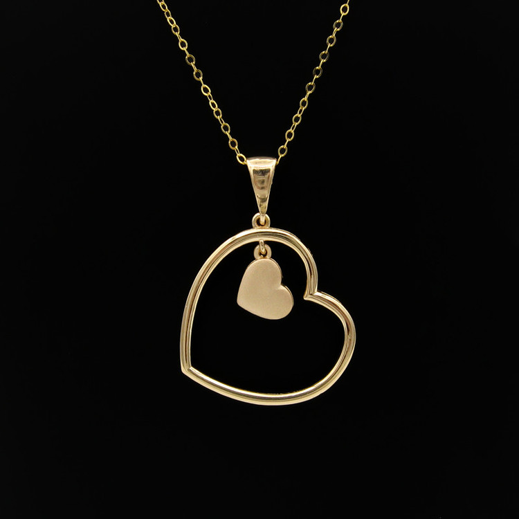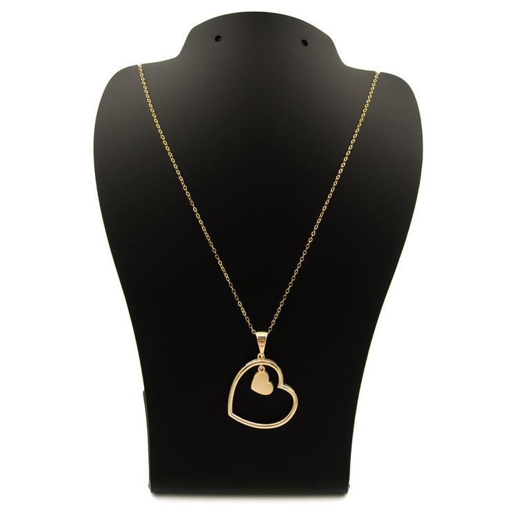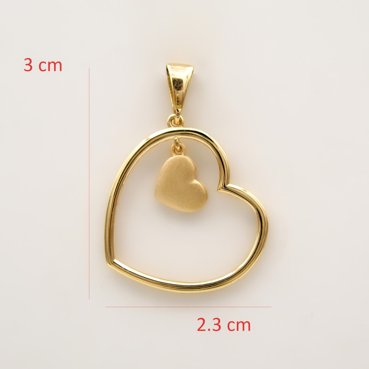 گردنبند شامل زنجیر و آویز طلا 18 عیار طرح قلب حلقه ای به همراه آویز قلب شنی با ابعاد تقریبی پلاک 2.3 × 3 سانتی متر