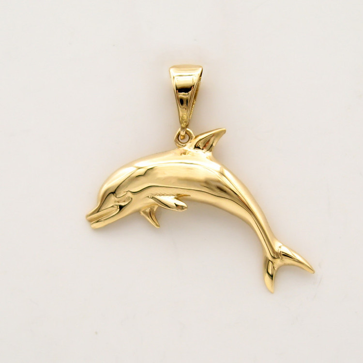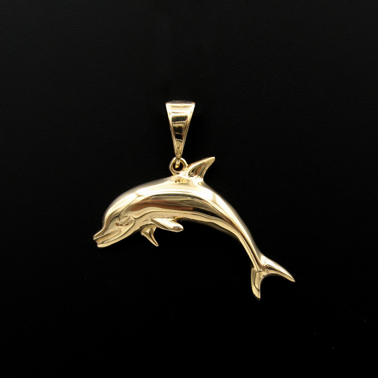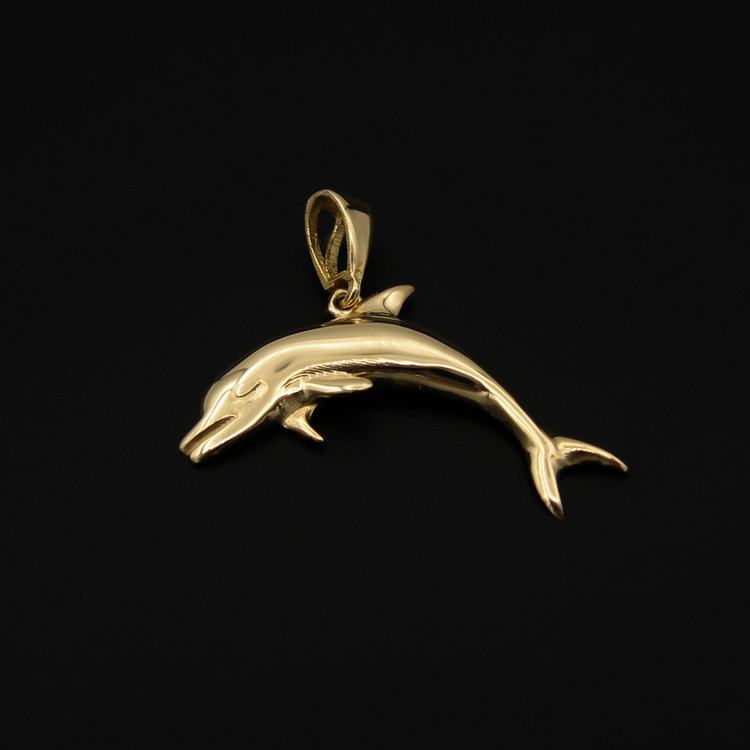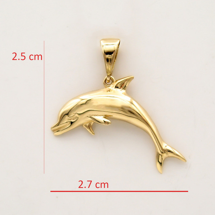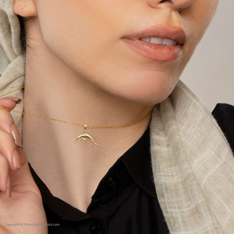 آویز طلا 18 عیار طرح دلفین دارای ابعاد تقریبی پلاک 2.5 × 2.7 سانتی متر