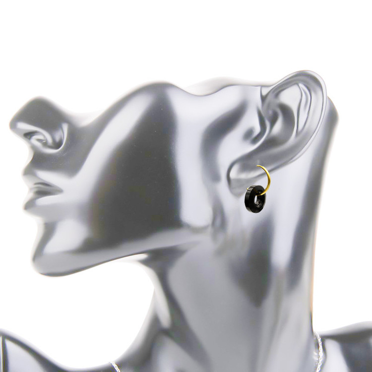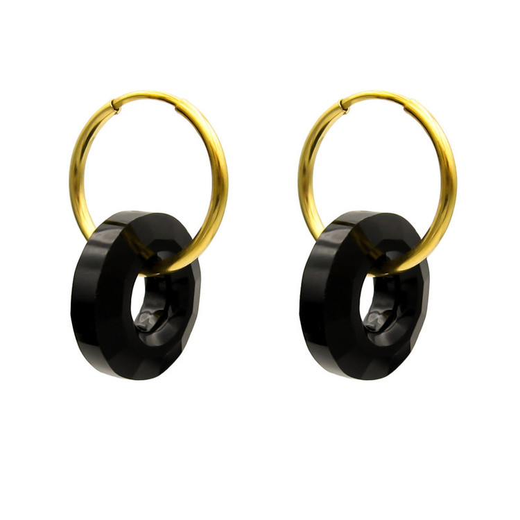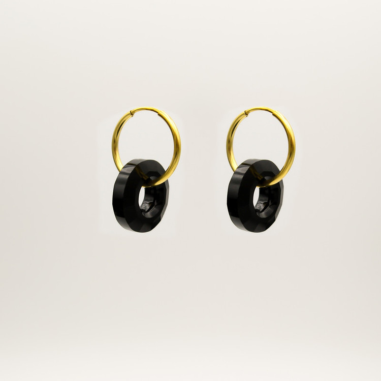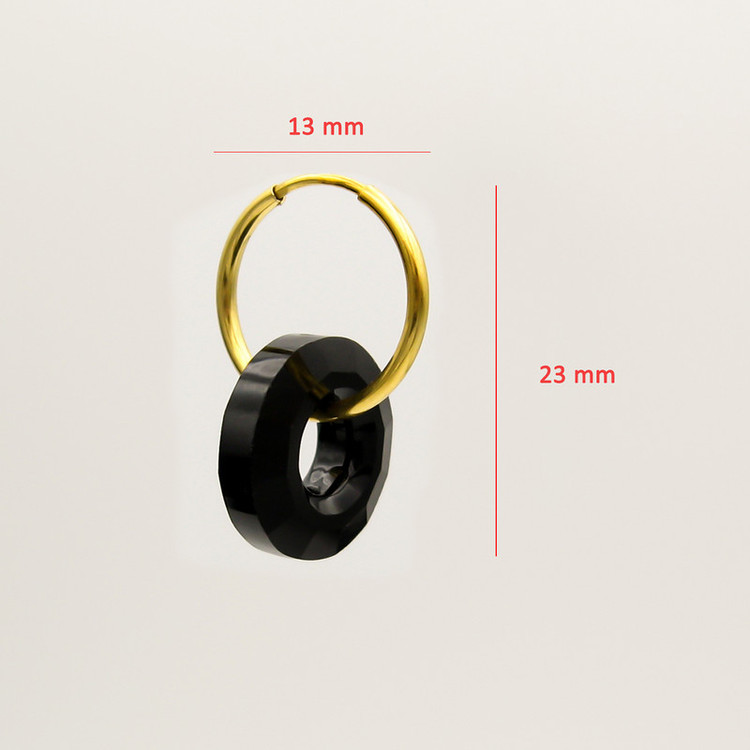 گوشواره طلا 18 عیار حلقه ای به همراه آویز کریستال مشکی تراش خورده طرح سواروسکی به ابعاد حدودی 1.3 × 2.3 سانتیمتر