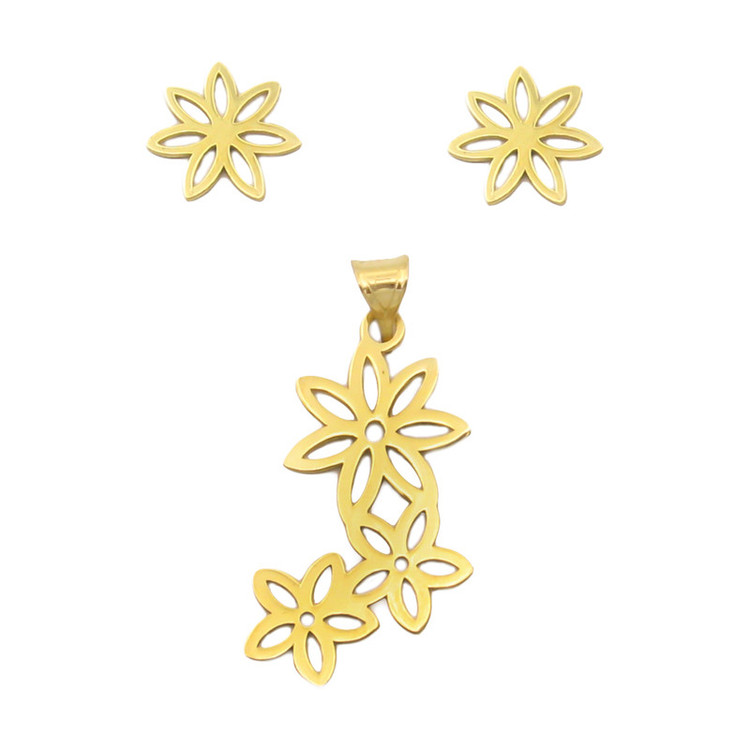 نیم ست طلا 18 عیار زنانه قیراط98 طرح گل کد KS014