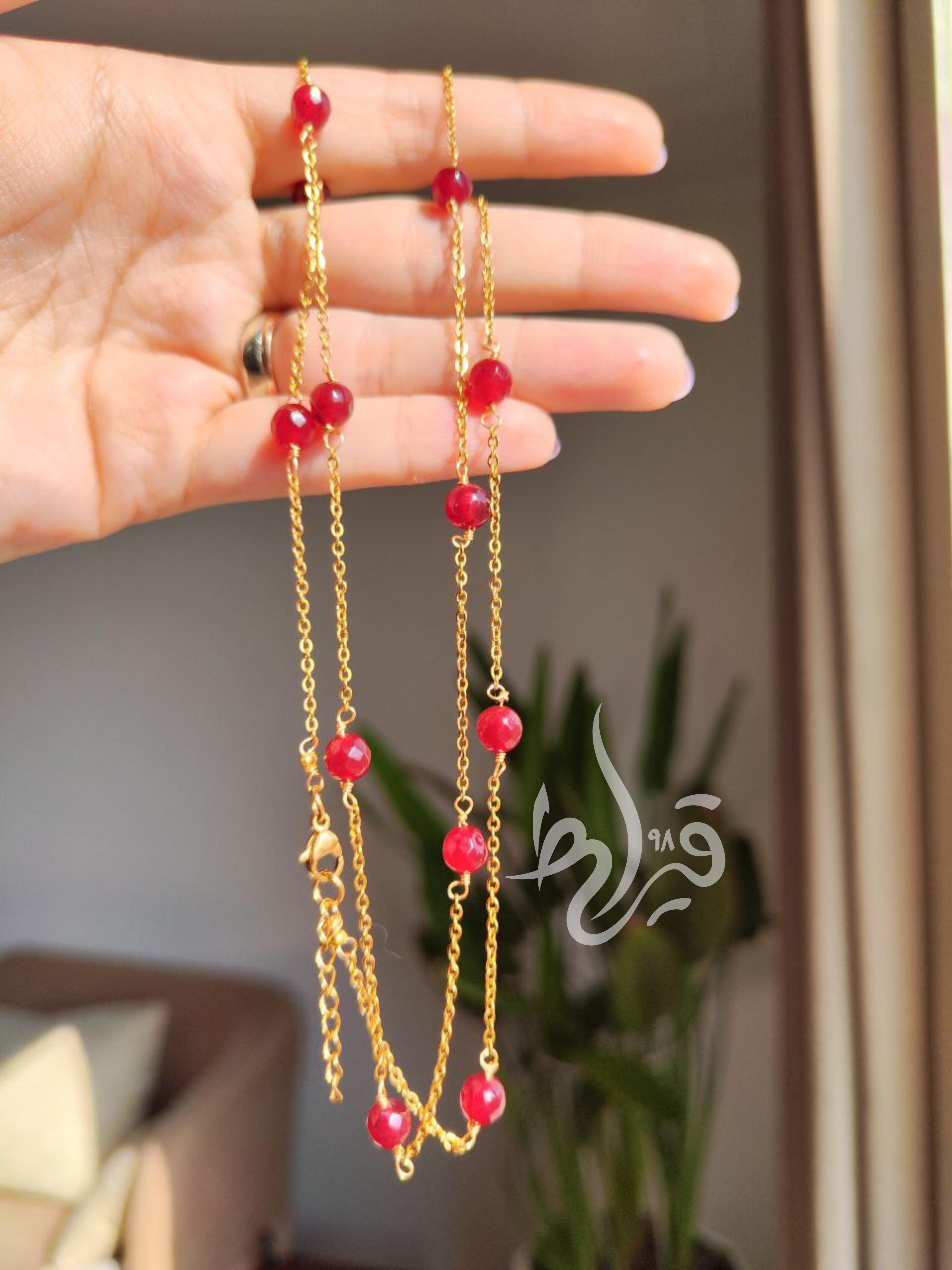 گردنبند رولباسی زنانه سنگ طبیعی عقیق سرخ ساخت قیراط98