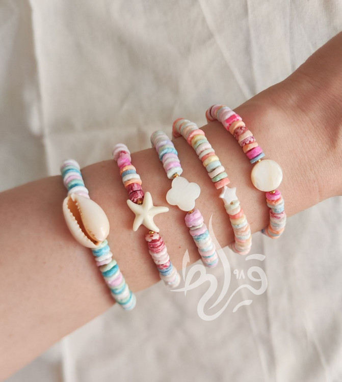 دستبند های زنانه و دخترانه صدف طبیعی رنگی قیراط98