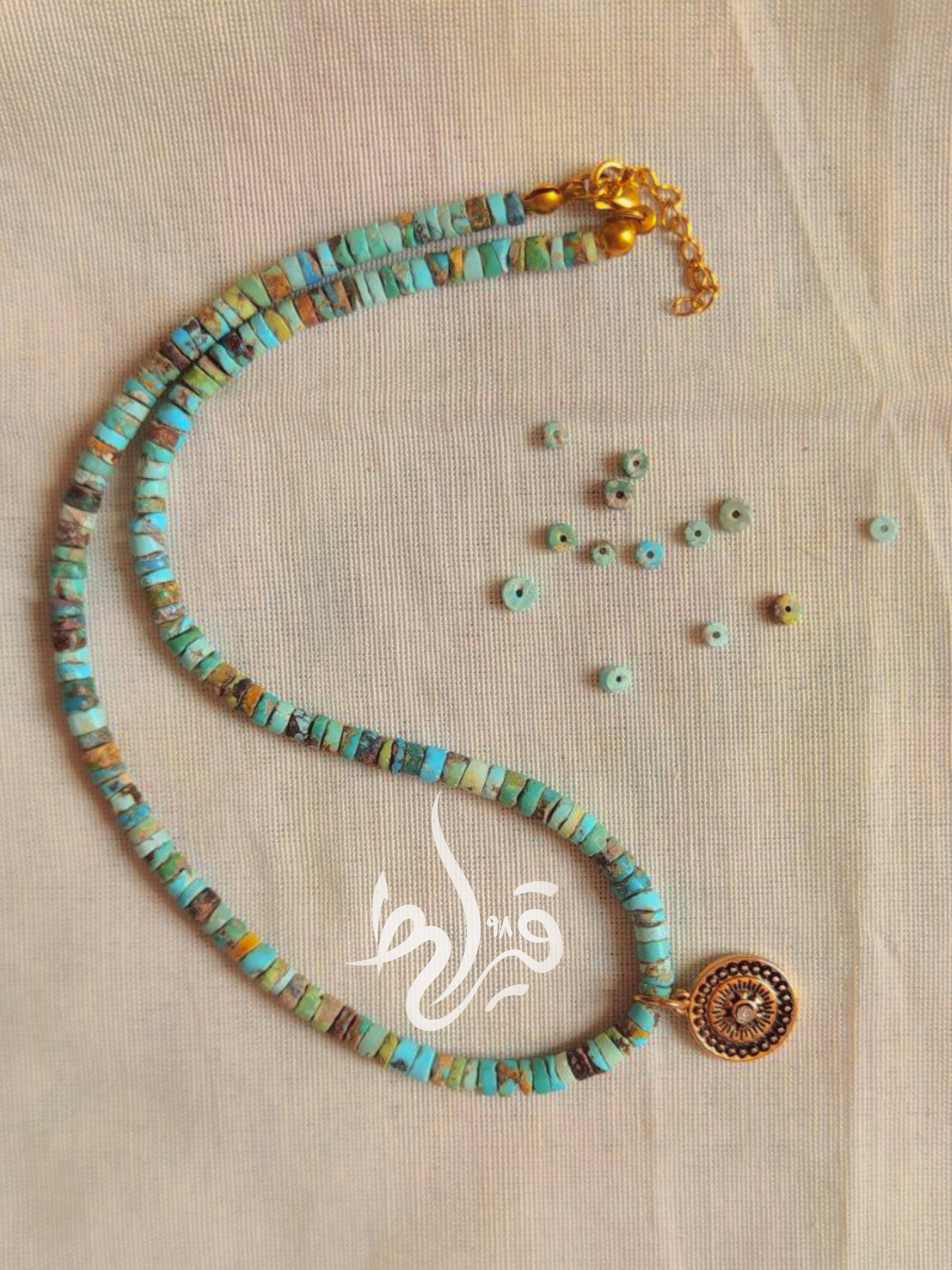 گردنبند زنانه سنگ طبیعی و اصل فیروزه نیشابور تراش واشری قیراط98
