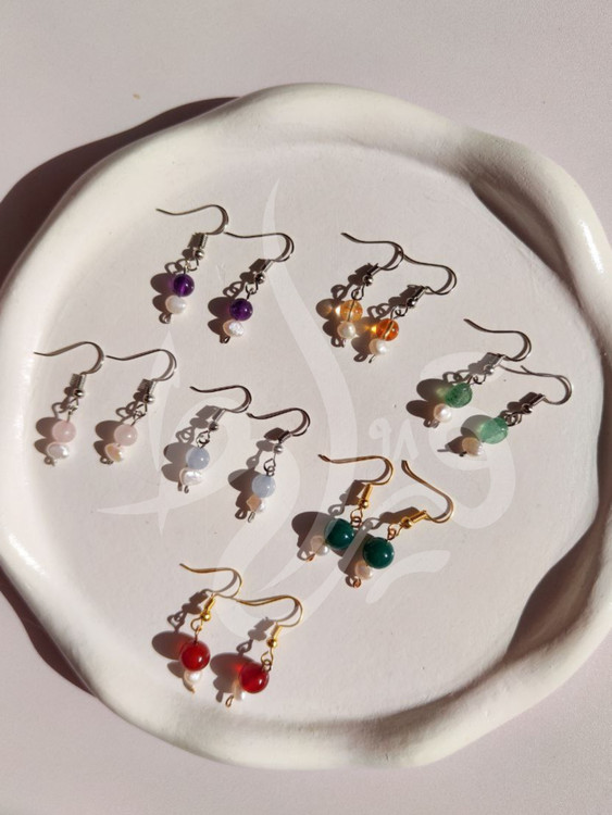 گوشواره های ظریف و زنانه سنگ و مروارید طبیعی قیراط98