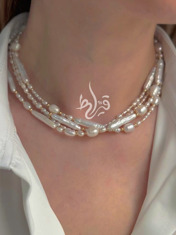 گردنبند زنانه و دخترانه مروارید طبیعی گرد و مروارید باروک لوله ای