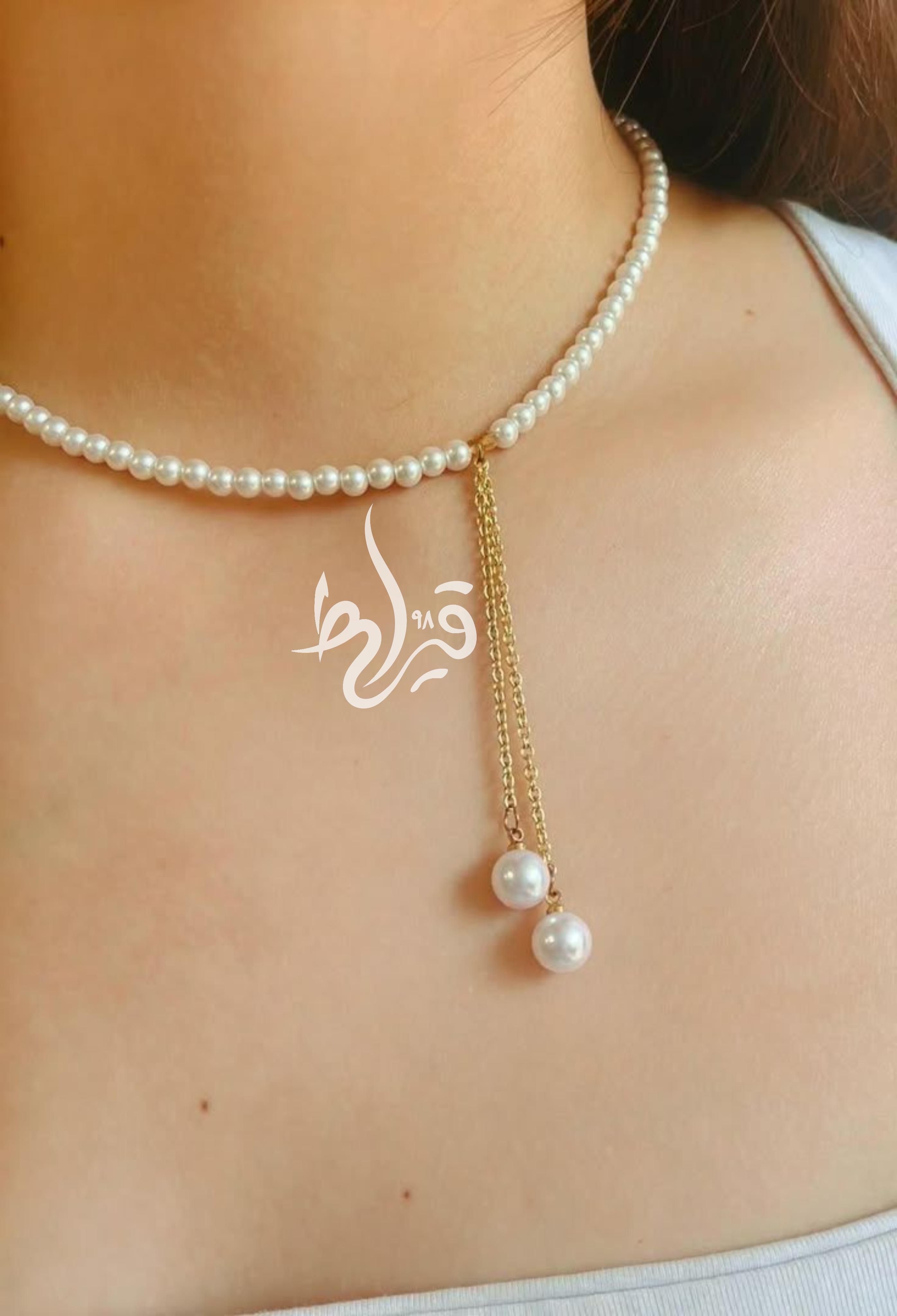 گردنبند ظریف دخترانه و زنانه مروارید طبیعی آویزدار