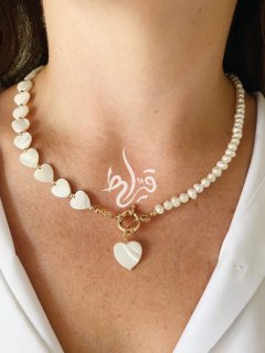 گردنبند زنانه و دخترانه مروارید طبیعی و صدف طبیعی قلبی شکل