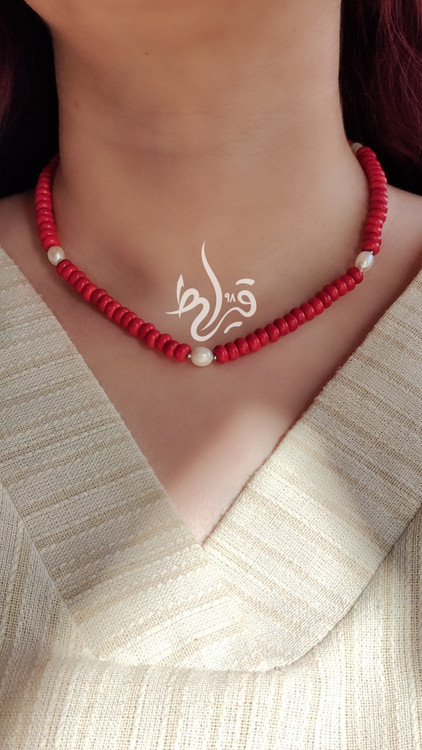 گردنبند زنانه و دخترانه مرجان طبیعی واشری و مروارید طبیعی