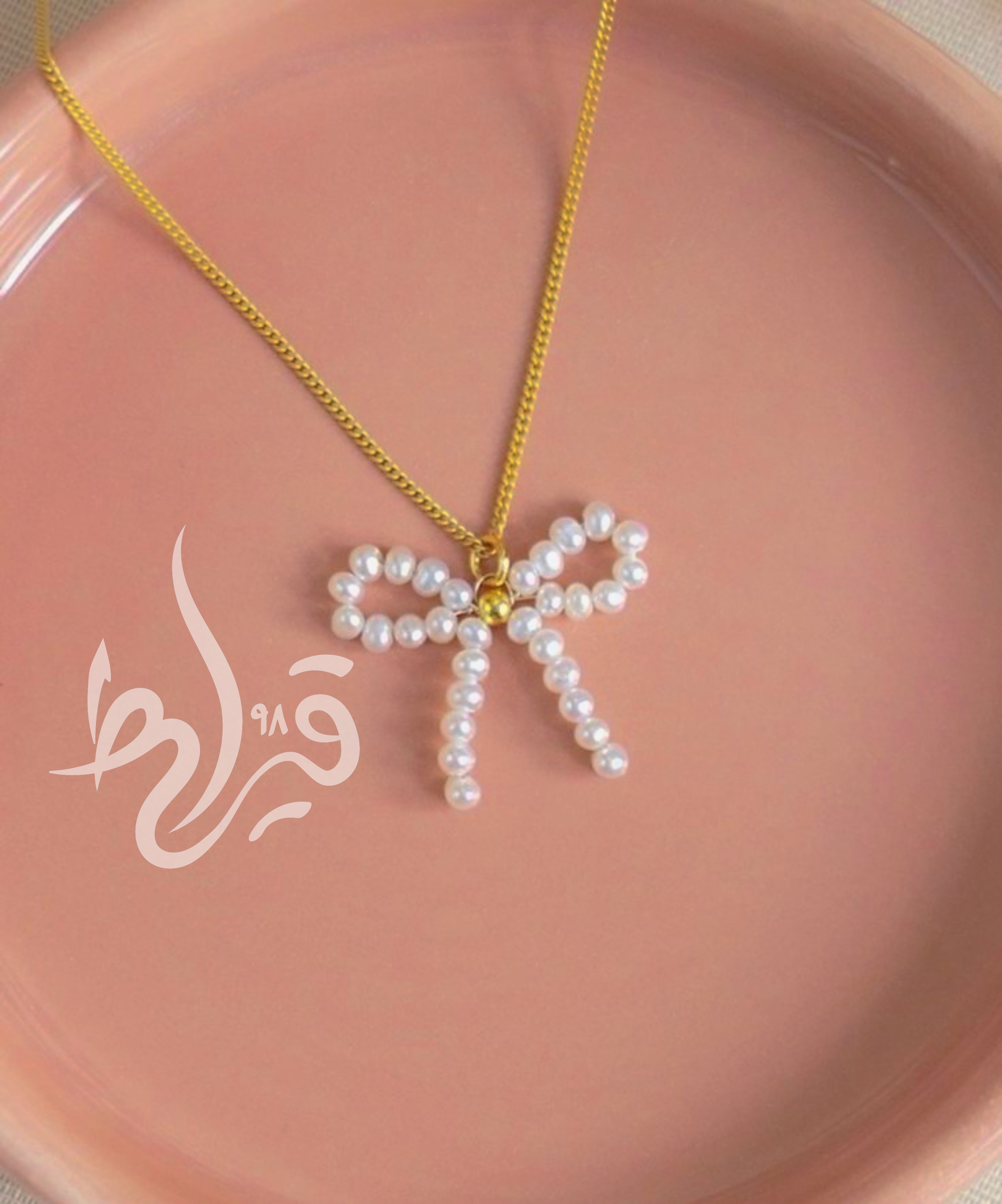 نیم ست دخترانه پاپیون با مروارید طبیعی