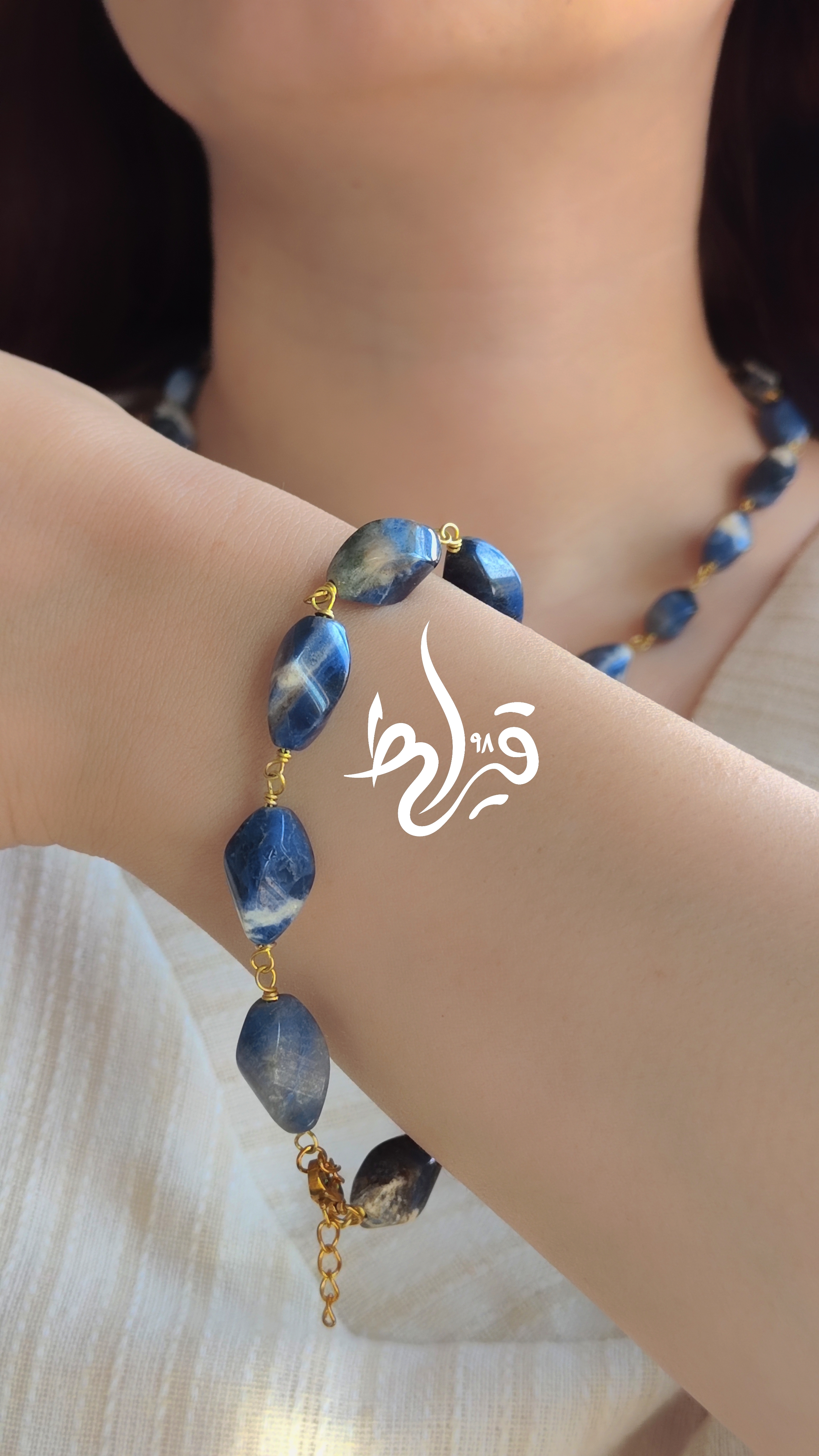 ست دستبند و گردنبند زنانه سودالیت طبیعی قیراط۹۸