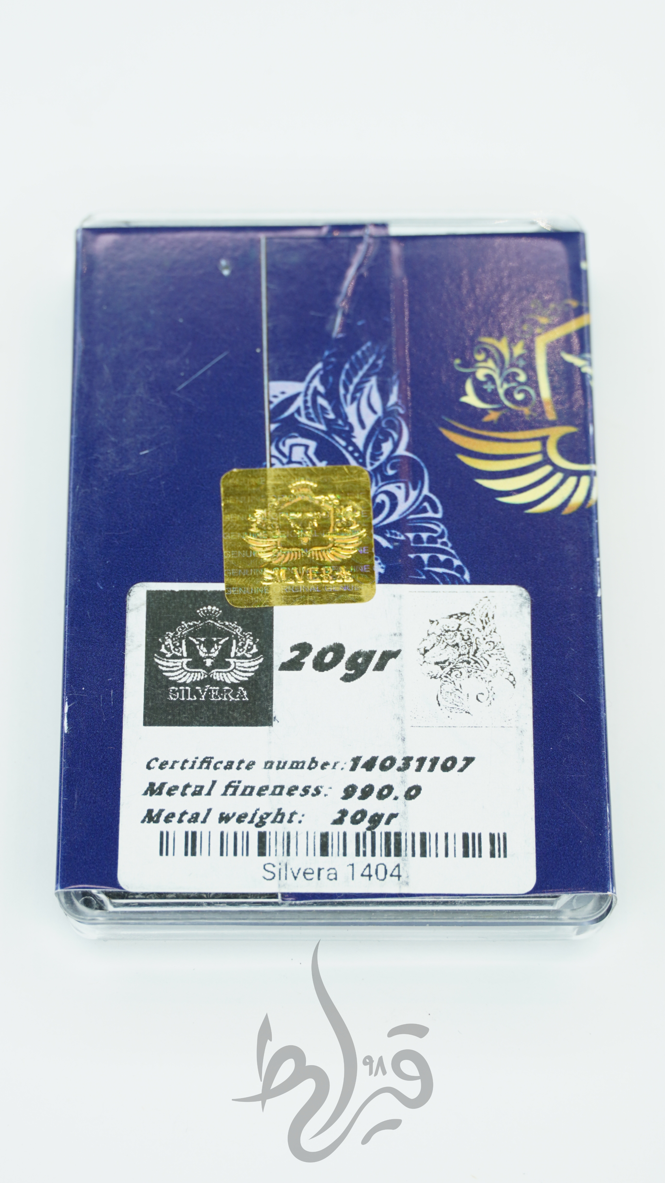 روی شمش، لوگوی اصلی Silvera و مشخصات "20 GRAMS – FINE SILVER – 990.0" درج شده است. در پشت بستهبندی نیز شماره سریال، گواهی اصالت، وزن، و عیار کالا ثبت شده تا خریدار با خیال راحت بتواند از اصل بودن آن مطمئن باشد.
