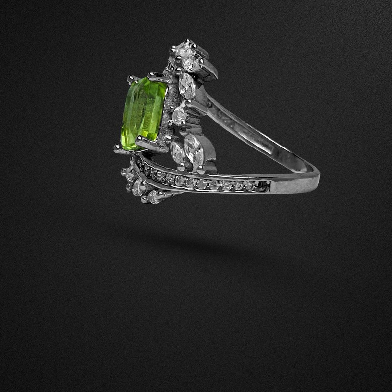 انگشتر زنانه بسیار شیک با طرح رکاب خاص و نگینِ ارزشمند زبرجد گوهر به کار رفته در این انگشتر کاملا طبیعی و معدنی است و همچنین تراش آن تراشی بینقص است که زیباییاش را دو چندان کرده است. همچنین جنس رکاب از نقره 925 یعنی بالاترین عیار مورد استفاده در ساخت جواهرات است که با نگین های ریز برلیان کات و تراش مارکیز مخراج کاری شده است.سایز انگشتر سایز متوسط میباشد و اگر برای انگشت شما بزرگ یا کوچک باشد در نقره فروشی ها، طلافروشی ها، جواهر فروشی ها یا تعمیرات نقره شهرتان با هزینه ناچیزی قابل تغییر سایز است.