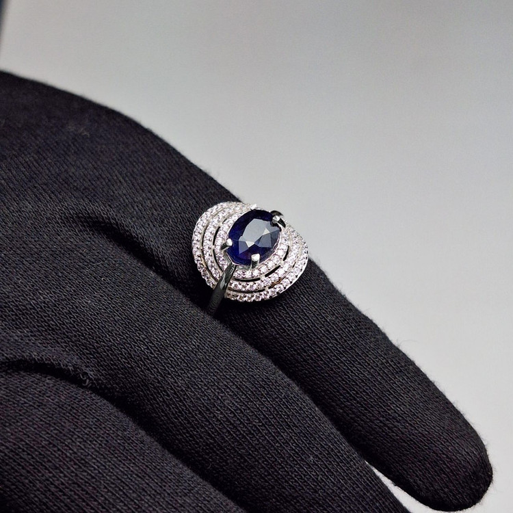 انگشتر زنانه بسیار شیک با طرح رکاب حلقهای خاص و نگینِ و خوش رنگ و خوش تراش یاقوت کبود است گوهر به کار رفته در این انگشتر کاملا طبیعی و معدنی میباشد و همچنین تراشی بی نقص است که این موضوع زیباییاش را دوچندان کرده و واقعا مجذوب کننده است. همچنین جنس رکاب از نقره 925 به همراه نگین های کوچک اتمی است و با نهایت دقت و ظرافت ساخته شده است. همچنین در مورد سایز انگشتر اصلا نگران نباشید. سایز انگشتر سایز متوسط میباشد و اگر برای انگشت شما بزرگ یا کوچک باشد در نقره فروشی ها، طلافروشی ها، جواهر فروشی ها یا تعمیرات نقره شهرتان با هزینه ناچیزی قابل سایز شدن است.