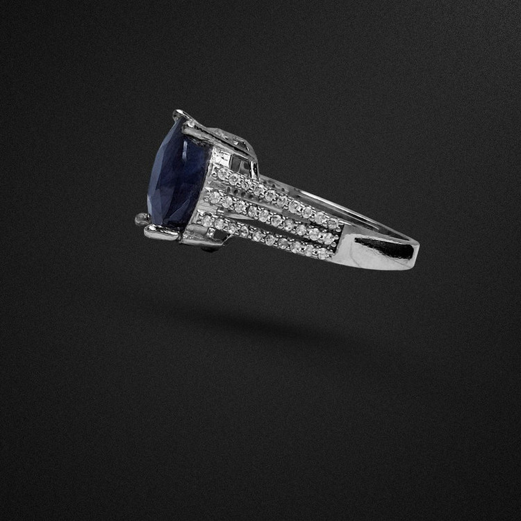انگشتر نقره زنانه 925 سنگ یاقوت کبود مدل رکاب سهخط کد 5502