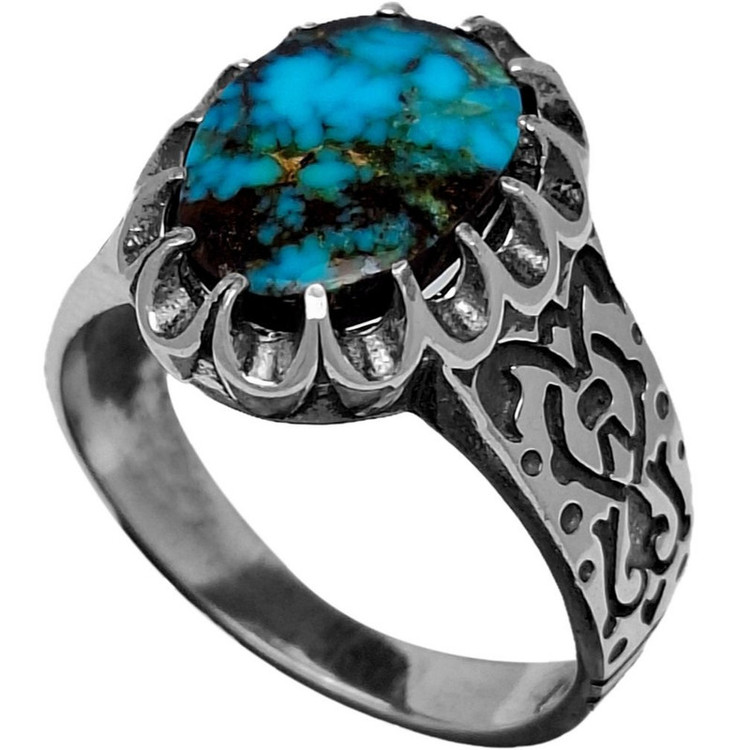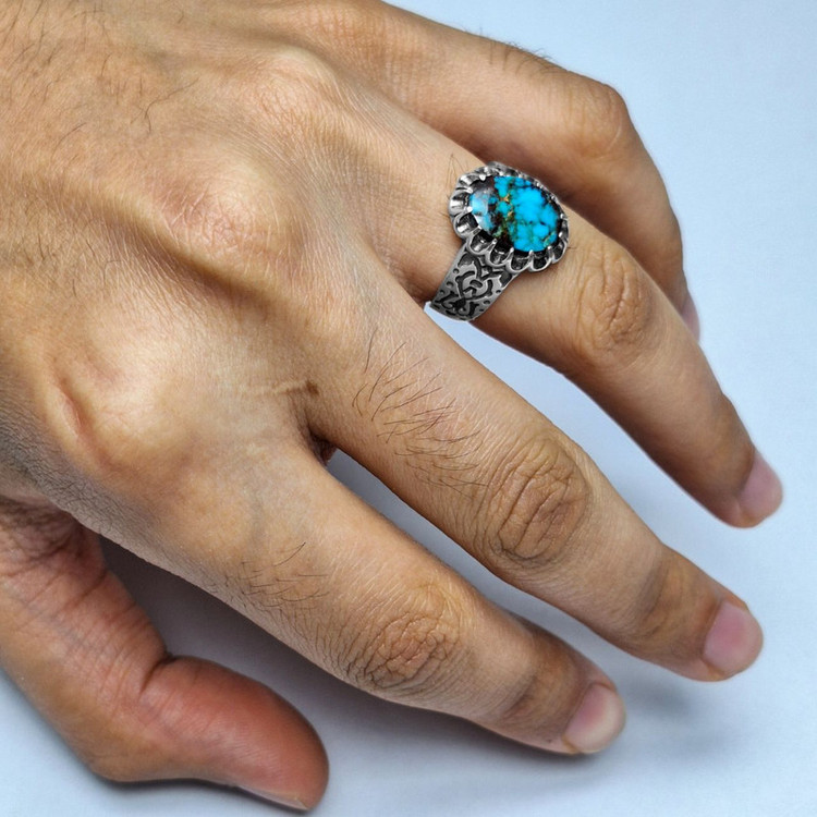 انگشتر نقره مردانه 925 سنگ فیروزه نیشابور کد 9902