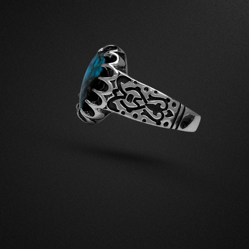 انگشتر نقره مردانه 925 سنگ فیروزه نیشابور کد 9902