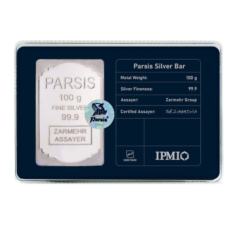 شمش نقره 100 گرمی پارسیس را میتوانید برای سرمایهگذاری، هدیه به دوستان و عزیزانتان تهیه کنید. به چند ویژگی این محصول میتوان به قابل خرید و فروش در کشور و خارج از کشور و پلمپ شرکتی مهر استاندارد و همینطور بسیار زیبا و با ابهت جهت سرمایه گزاری و هدیه اشاره کرد. شمش نقره پارسیس، تنها شمش نقره ایرانی با عیار 99.9 (کاملا خالص) و وزن 100 گرم است. شمش نقره در بستهبندی اختصاصی زیبا و نفیس مناسب هدیه ارسال میشود. شمشهای پارسیس دارای تاییدیه سازمان جهانی فلزات گرانبها International Precious Metal Institute میباشند. این شمشها با کمترین کارمزد عرضه شده و در فروشگاههای معتبر به قیمت روز نقره خریداری میشوند. شمشهای پارسیس به دلیل ثبت برند بین المللی در اتحادیه اروپا، امارات، ترکیه، عراق، ایران و ... قابلیت خرید و فروش در تمامی دنیا را دارد.
