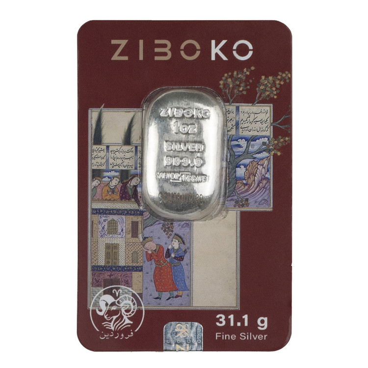 شمش نقره خالص 999.9 (1 اونس) با طراحی منحصربهفرد از داستان «رودابه و زال» شاهنامه فردوسی و نگارگری شاهنامه طهماسبی است . نماد قوچ، نگاره زیبا از رودابه و زال و متن شاعرانه «فروردینیها زاده مهر و شکوهاند، از تبار رودابه و زال QRکد پشت بسته: ویدیو داستان شاهنامه و ارتباط آن با ویژگیهای متولدین فروردین درج شده است. متن معرفی به چهار زبان( فارسی، انگلیسی، عربی و روسی )روی جعبه چاپ شده است. شمش نقره زیبوکو یک گزینه ارزشمند برای هدیه تولد و همچنین یک کادوی سازمانی خاص است و بهعنوان یک محصول کلکسیونی و سرمایهگذاری مطمئن، برای متولدین فروردین انتخابی ماندگار به شمار میآید.