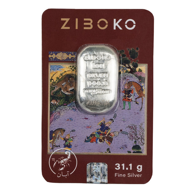 شمش نقره ۱ اونسی زیبوکو طرح «آبان» (خلوص ۹۹۹.۹) ویژه متولدین ماه آبان بهترین هدیه تولد و کادوی سازمانی عمیق و احساسی است . با نگاره تراژیک و ماندگار «نبرد رستم و سهراب» از شاهنامه و نماد عقرب، نماد احساسات عمیق، تطهیر و عنصر آب که دقیقاً با روحیه پراحساس، بخشنده و عمیق آبانماهیها همخوانی دارد. پشت بستهبندی شعر کوتاه و QR کد ویدئوی کامل داستان رستم و سهراب و شماره سریال اختصاصی درج شده است . متن معرفی به ۴ زبان (فارسی، انگلیسی، عربی، روسی) روی بستهبندی چاپ شده؛ انتخابی بسیار احساسی، فرهنگی و لوکس برای هدیه سازمانی به کارمندان، مشتریان داخلی و خارجی، مهمانان بینالمللی و توریستها می باشد . شمش نقره ۱ اونسی زیبوکو طرح آبان: سرمایهگذاری مطمئن در نقره و هدیهای عمیق و پرمعنا برای متولدین ماه هشتم سال که با اشک و احساس، دنیا را میفهمند و میبخشند.