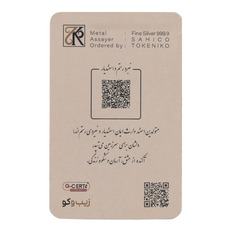 شمش نقره ۱ اونسی زیبوکو طرح «اسفند» (خلوص ۹۹۹.۹) ویژه متولدین ماه اسفند بهترین هدیه تولد و کادوی سازمانی عاشق و آرمانگرا است . با نگاره حماسی و باشکوه «نبرد رستم و اسفندیار» از شاهنامه و نماد دو ماهی، نماد عشق، ایمان، آرمان و عنصر آب که دقیقاً با روحیه رؤیاپرداز، عاشق و وطنپرست اسفندیماهیها همخوانی دارد. پشت بستهبندی شعر کوتاه و QR کد ویدئوی کامل داستان رستم و اسفندیارو شماره سریال اختصاصی درج شده است . متن معرفی به ۴ زبان (فارسی، انگلیسی، عربی، روسی) روی بستهبندی چاپ شده؛ انتخابی بسیار عاشقانه، فرهنگی و لاکچری برای هدیه سازمانی به کارمندان، مشتریان داخلی و خارجی، مهمانان بینالمللی و توریست ها می باشد. شمش نقره ۱ اونسی زیبوکو طرح اسفند: سرمایهگذاری مطمئن در نقره و هدیهای پر از عشق، ایمان و شکوه برای متولدین ماه دوازدهم سال که همچون رستم و اسفندیار، قلبشان برای سرزمین و آرمان میتپد.