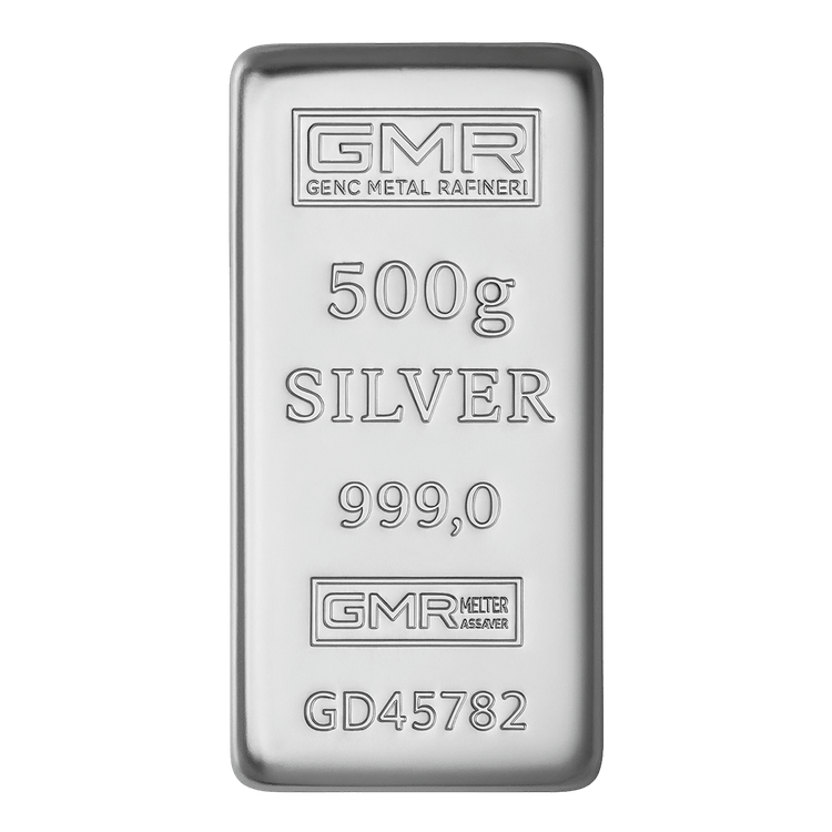 شمش نقره 500 گرمی جی ام آر ترکیه (GMR) با عیار 999.0 ریختهگری