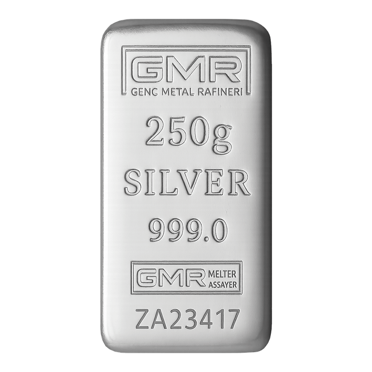 شمش نقره 250 گرمی جی ام آر ترکیه (GMR) با عیار 999.0 ریختهگری