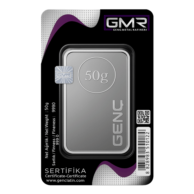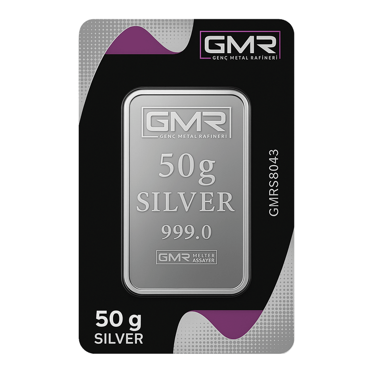 شمش نقره 50 گرمی جی ام آر ترکیه (GMR) با عیار 999.0