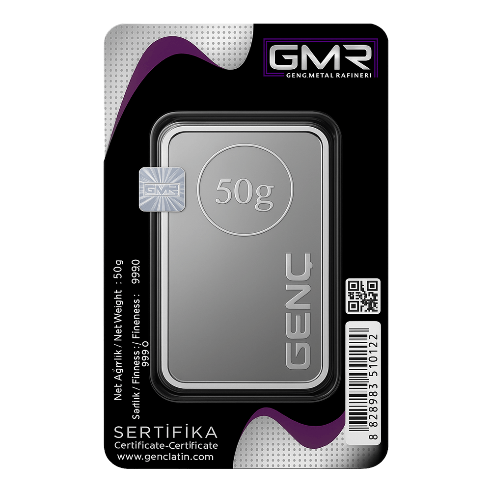 شمش نقره 50 گرمی جی ام آر ترکیه (GMR) با عیار 999.0