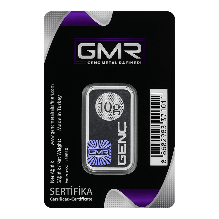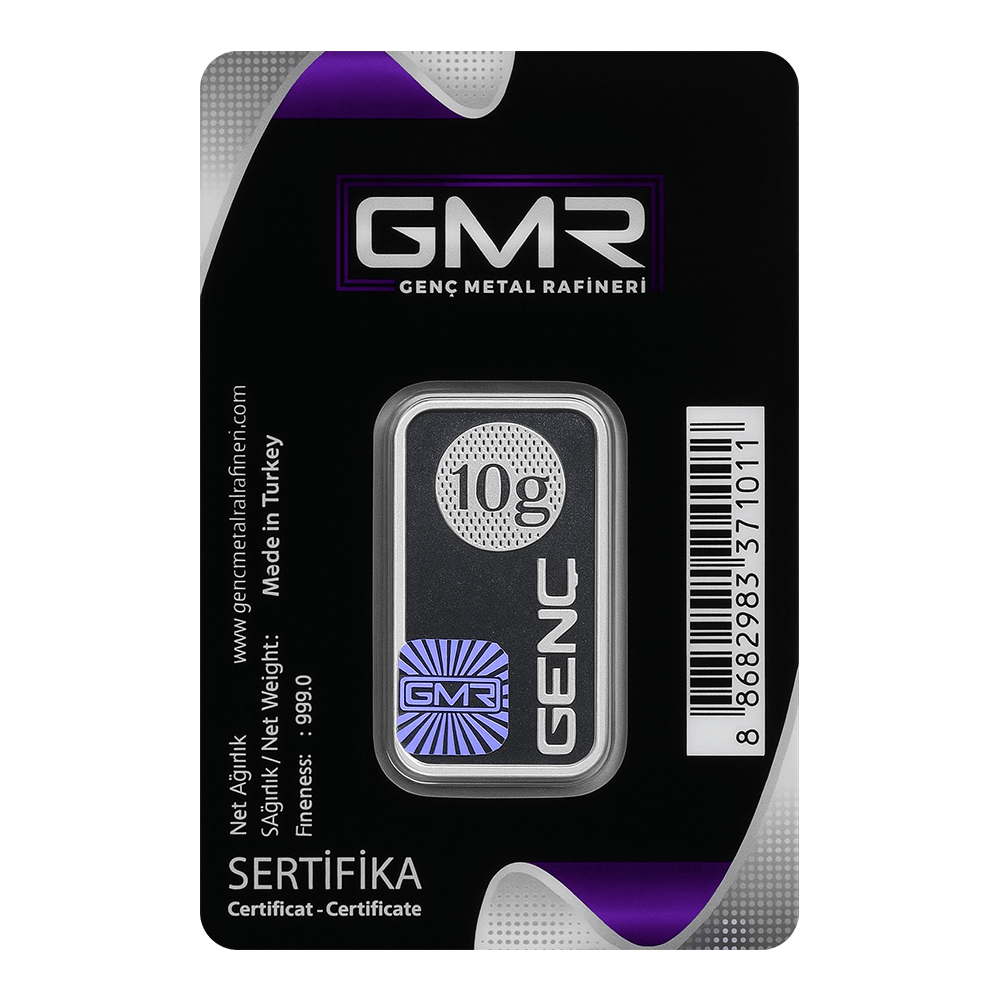 شمش نقره 10 گرمی جی ام آر ترکیه (GMR) با عیار 999.0