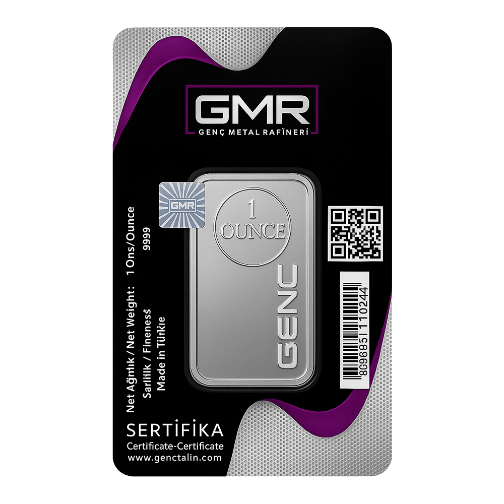 شمش نقره 1 اونسی جی ام آر ترکیه (GMR) با عیار 999.0