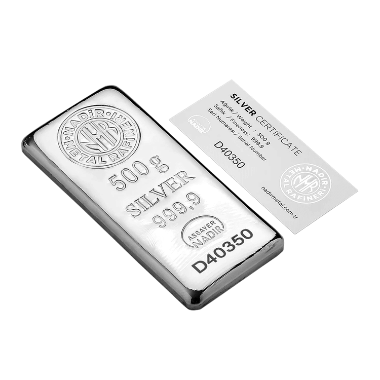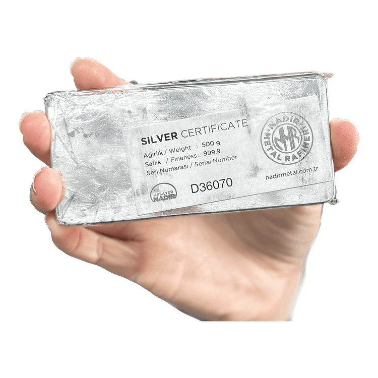 شمش نقره 500 گرمی عیار 999.9 نادیر ترکیه (Nadir Metal)