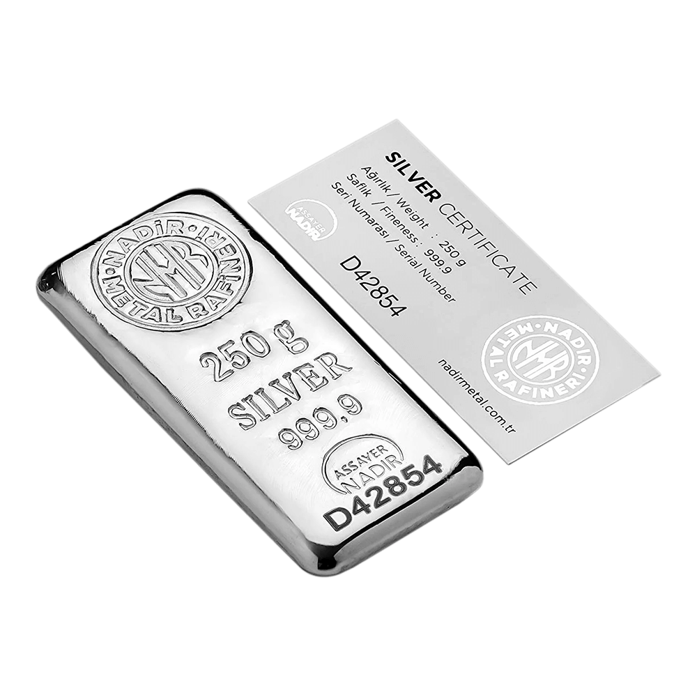 شمش نقره 250 گرمی عیار 999.9 نادیر ترکیه (Nadir Metal)